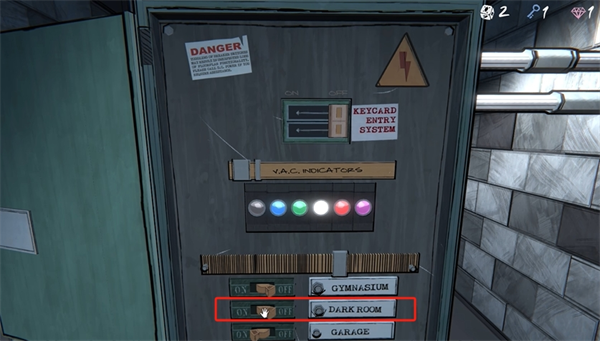 1、首次进入暗房时灯光会自动关闭,此时我们要去杂物间里打开暗房的开关。