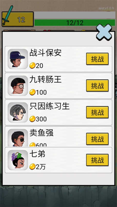 5、挑选你想要挑战的人物角色,例如:战斗保安、九转肠王、只因练习生、卖鱼强、七弟等等。