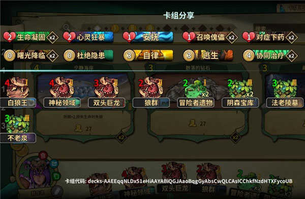 拥有1个心灵狂暴,2个曙光降临,2个协同治疗,2个对症下药,2个召唤傀儡,1个自律或1个调整状态,以及2个生命凝固。