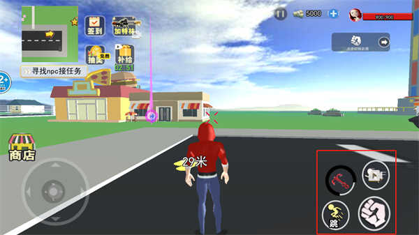3、通过点击右下角的按钮来进行跳跃和攻击;