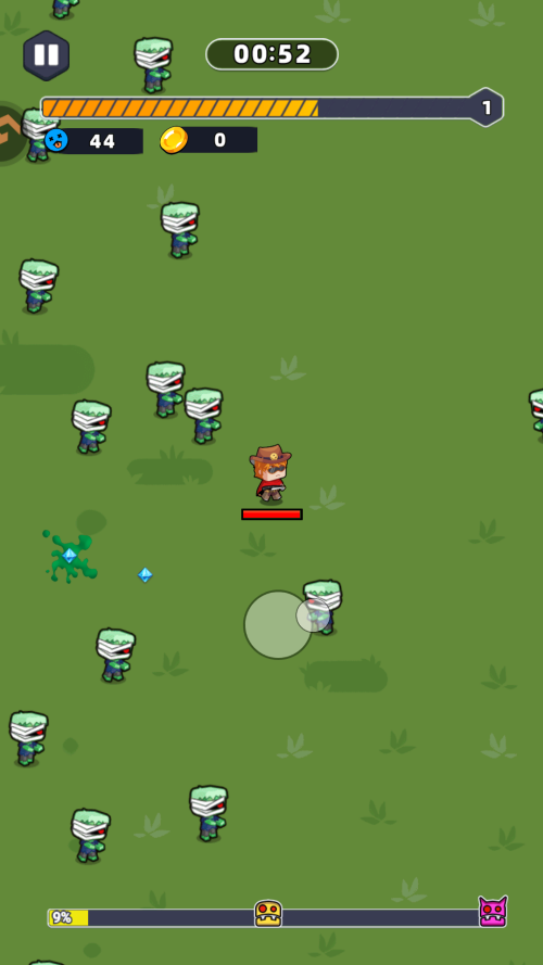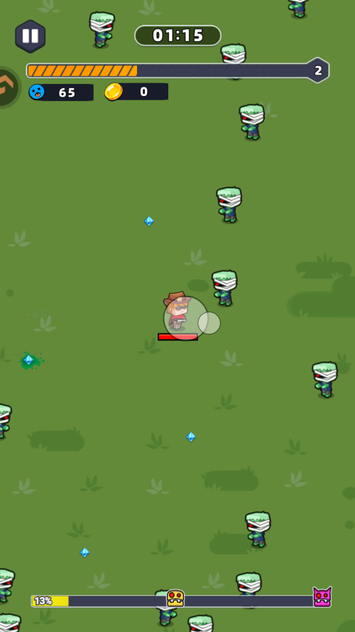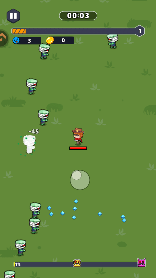 2. 通过指尖移动来操控角色移动,收集经验,并战胜敌人。