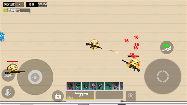 2、你将扮演一个emoji角色,在广袤的地图中尽情探索,收集各类资源与装备,战胜敌人。