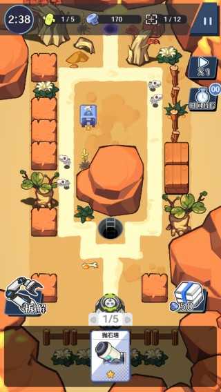 4、高自由度:游戏赋予你极高的自由度,你能够自由挑选卡牌进行组合,还能通过升星来合成炮塔。不仅如此,在战斗过程中,你可以随心所欲地摆放炮台,并根据局势自由调整它们的位置,充分施展你的策略思维与操作技巧。