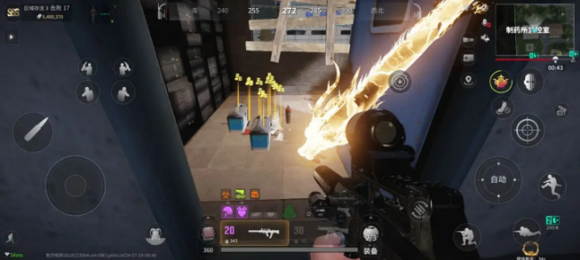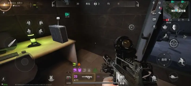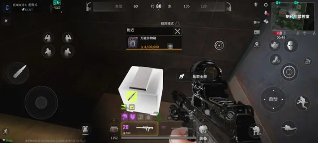 1. 游戏开局选择1号复活点,这个位置距离监控室较近。到达后,先在监控室藏好大杂,接着在监控室楼下投放一个探测球,如此便能够在整个地图上搜寻物资了。