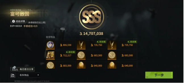5、第一波开始造成扣血的风暴,能用针或者药扛过去。但接下来那波风暴,血量掉得极快,需要时不时用药,不建议硬扛太长时间。要是运气够好,单人能带着两千万撤离;运气欠佳的话,就像我这局,只能拿到1400万左右。