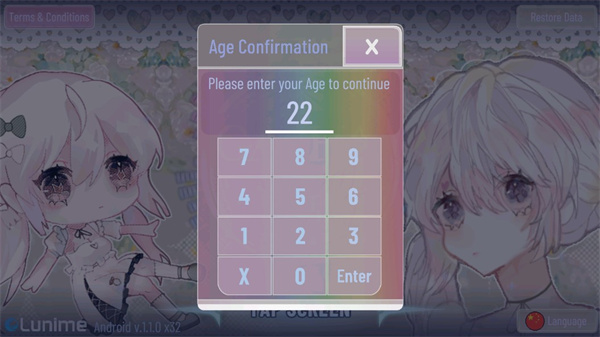 1、第一步,进入GACHA甜甜正版,在此处点击右下角的language。