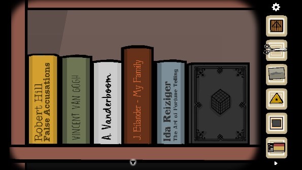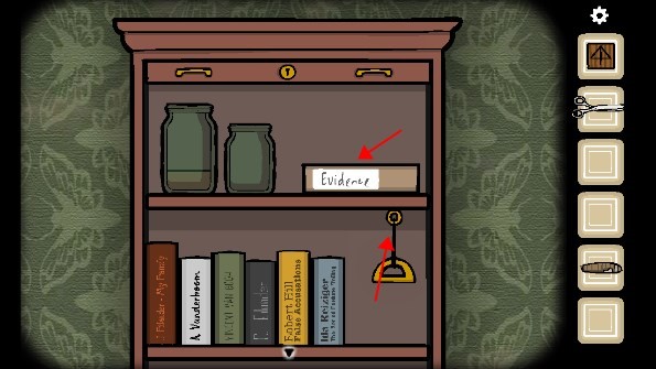 13、连续点击两次钥匙孔,随即出现眼睛。仔细观察眼睛上图案所处的位置,接着将时钟的指针转动到十二点四十五分。此时暗格开启,从中获取「三角形钥匙」。使用这把钥匙打开右边的抽屉,可得到「胶片2」与「手帕」。再打开左边的抽屉,里面满是各种文件夹,其中包含书架上书摆放位置的提示信息以及一个「文件」 。