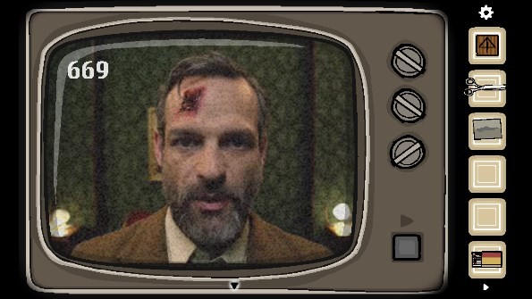 15、把胶片2放进投影机,之后会得到提示「588」以及五个符号所对应的物品。接着,将电视频道调至588,按照画面里呈现的顺序「乌鸦、男人、女人、药瓶、黑影」找出对应的符号。