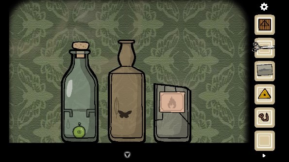 17、依据提示确定行进路径,完成之后开启地球仪,按照三个瓶子上的提示,把火柴点燃并放入第三个瓶子内,打破瓶子从而获取「钩子」,接着用剪刀从花盆里剪下一段「树枝」,再将叶子放入第二个瓶子当中。