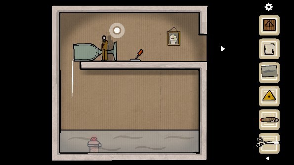 22、第一步,操控男主从初始房间进入黄色房间,接着进入粉色房间,之后乘坐电梯抵达棕色房间。操控小人把水杯推倒,随后前往相框所在位置,最后从这个小房间退出。