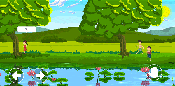 1. 朝右移动至大宇身旁,待大宇头顶冒出对话图标,点击右下角的手印按钮与大宇交谈,选择帮大宇钓鱼。