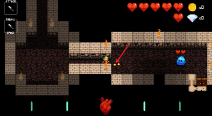 3、地牢里的怪物,走路方式和攻击方式各不相同。除了按一个节拍走一步的,有些怪物还会施展技能。