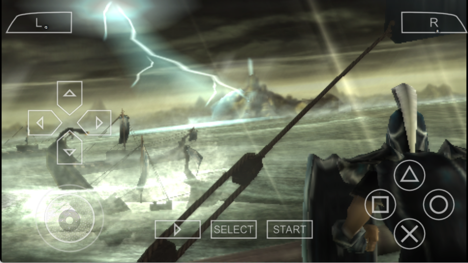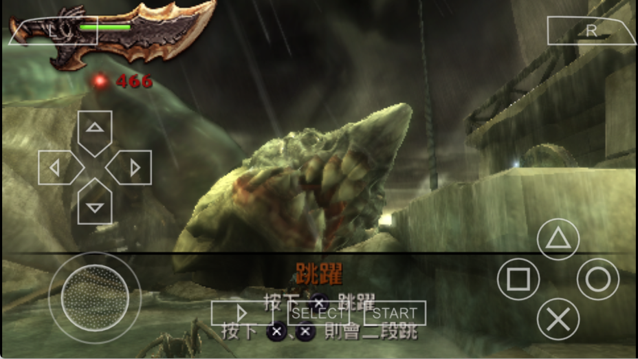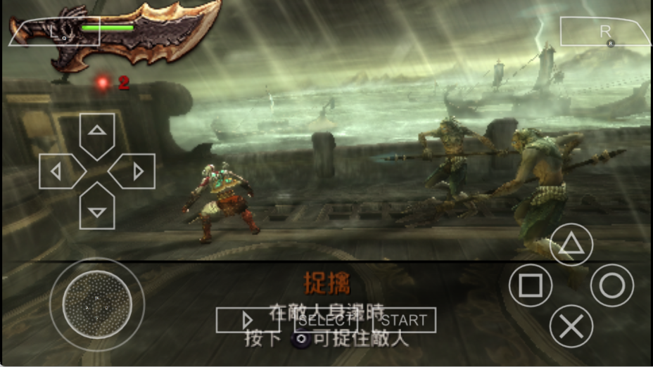 游戏初始阶段,玩家仅能使用招牌武器裂刃。随着游戏进程推进,玩家可解锁使用一些新武器,例如试玩版里的斯巴达枪盾。鉴于PSP键位数量有限,家用机中经典的武器交换技不得不取消。就裂刃而言,它不仅可作为攻击武器,还能借助吊钩索实现跳跃。此外,双刀同样能达成钩索跳跃操作。