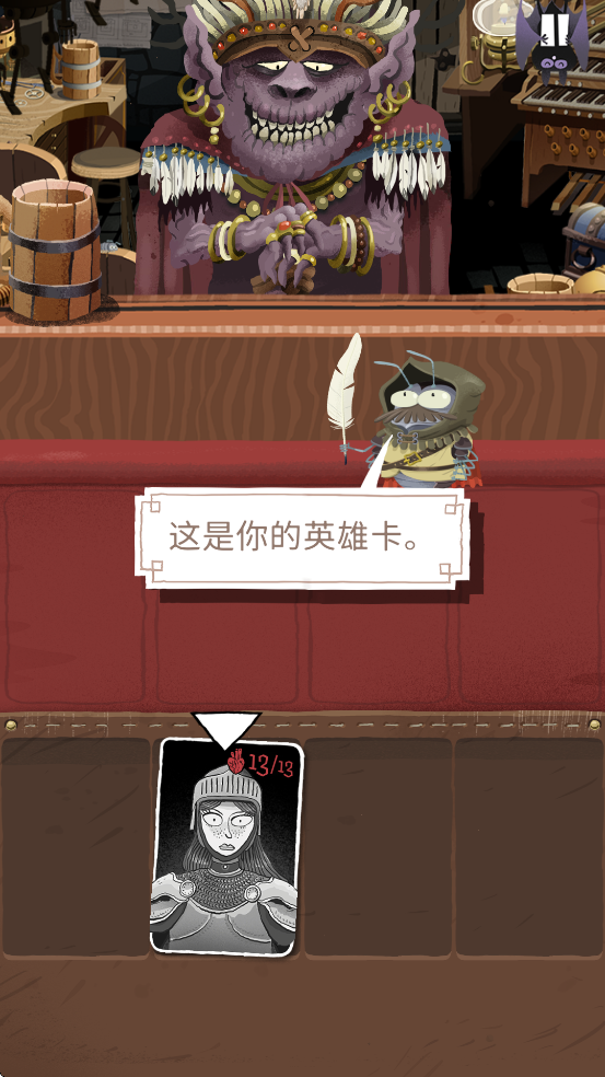 在英雄的上方便是游戏区域。酒馆卡组里的卡片,会被分发至游戏区域的槽位之中。