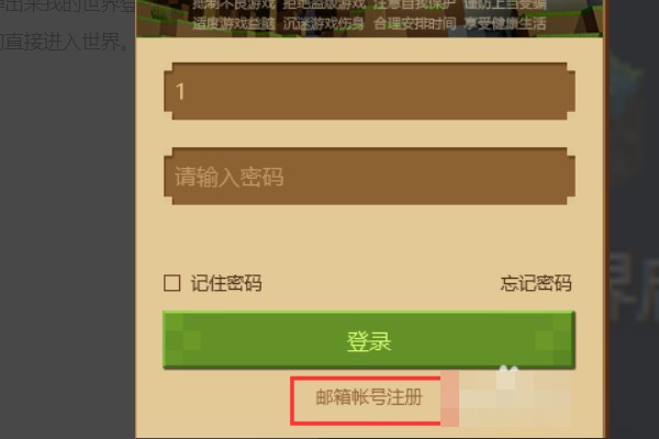 6、接下来,在登录界面输入刚刚注册的我的世界账号及密码,点击登录,即可畅享我的世界。