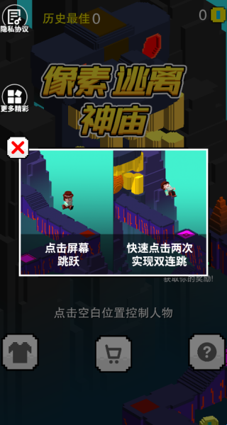 像素逃离神庙中文版是一款像素风格的“地铁跑酷”类游戏,能为玩家带来刺激的冒险感受。在游戏里,玩家将化身为敏捷的勇者,于古老神庙中躲避滚石和致命机关。玩家仅需简单的滑屏操作,便可轻松做出跳跃、滑铲等一连串动作。与此同时,玩家还得反应迅速地避开前方的障碍物,方能赢得最终胜利。