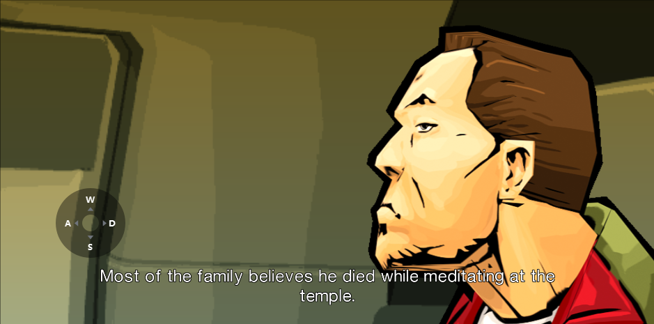 4、一见面,黄(主角)的叔叔就很诧异的说道“我听说你被杀了?”(猜测:明显,杀手是这位仁兄派的)“不过,能看到你活着我很高兴”,主角抱怨原以为到这里会受到VIP贵宾般的待遇,Kenny安慰他,将设法找到杀手帮他报仇。接下来话题自然转到了黄父亲留给他的那把宝剑上,听问宝剑被抢走,Kenny非常生气,原来他打算把剑送给外人,以此来换取未来可能的权力与地位。主角当然不愿意了,这是父亲留下来的物品。Kenny表示了自己也跟主角一样的想法,但是为了整个家族他需要忍痛做出这样的决定。最后,Kenny叔叔告诉主角,让他稍微休息会,稍后会给他引荐几个朋友。