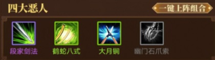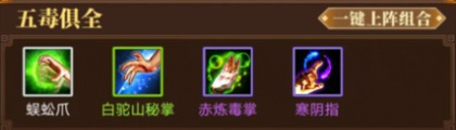 前期十连抽的核心目标是获取五毒、四大神僧、四大恶人这三个前期关键的武功组合(具体效果可前往武功组合界面查看)。这三者里,五毒堪称推图神器,四大神僧在前期PK中表现强势,而四大恶人则兼具推图与PK的双重优势。