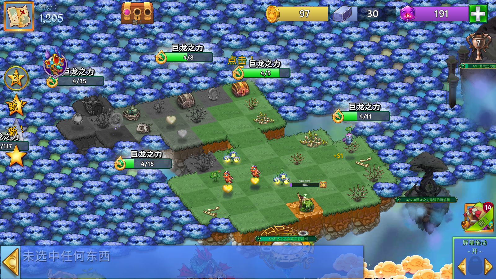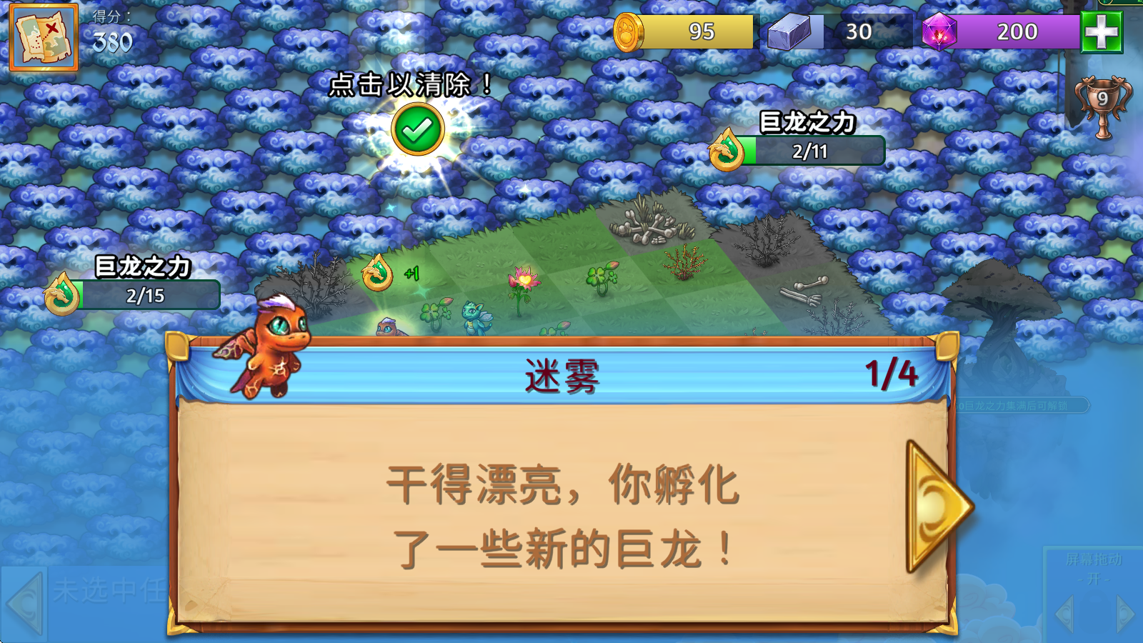 2、海量的关卡等着你去挑战,跟随关卡一起探索神秘的巨龙世界,解放更多被污染的土地,收集更多巨龙。