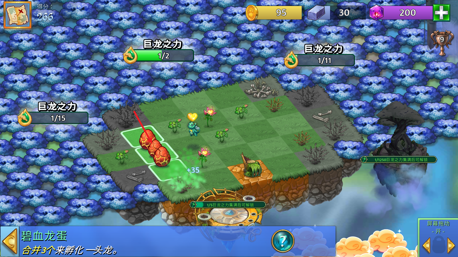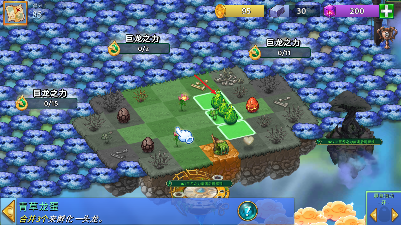 2、有了小龙后,就可以去采集治愈之力,以此去净化营地中的其他龙蛋。