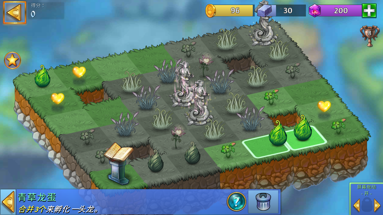 2、游戏中拖动三个相同物品即可进行合成,例如这里就通过合成得到了小龙。