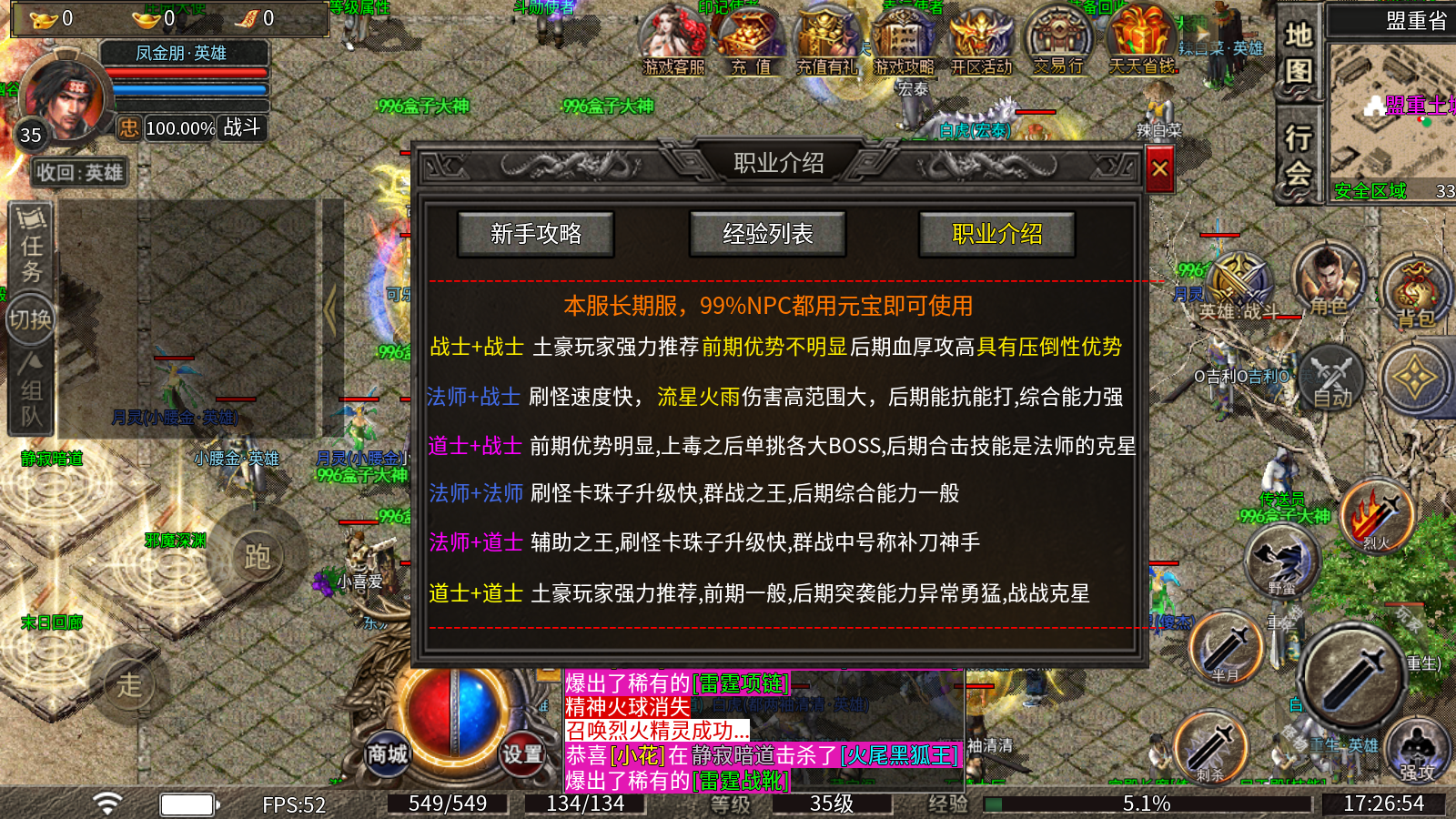 这是一个超燃的三职业合击版本,爆率高得离谱,所有装备全靠打怪爆,人人都有机会圆大佬梦,只要肯花时间,你也能成为游戏里的风云人物!