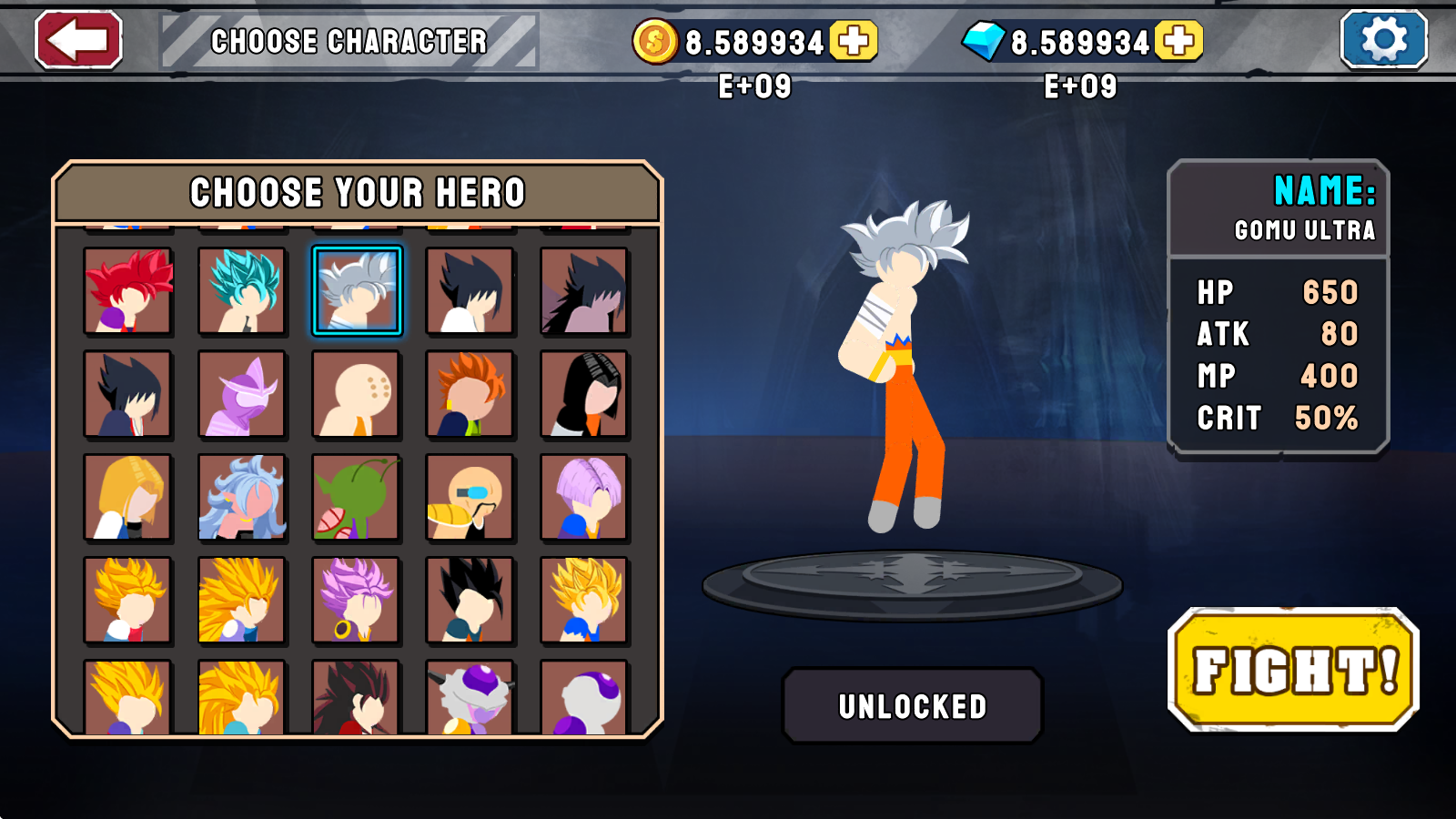 2、丰富多样的动漫人物可以去选择使用,悟空、贝吉塔、短笛等等,并且还有对应的各种形态可以进行变身呢。
