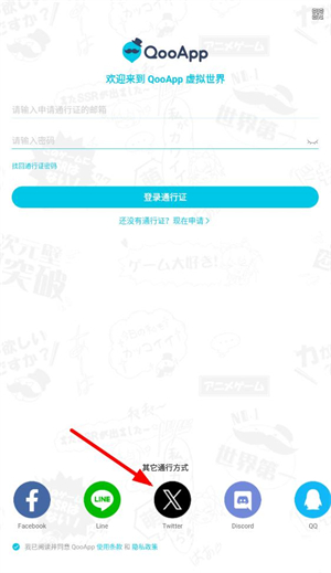 2、也可以点击下方的其他登录方式来登录,其他登录方式有谷歌、脸书、line、X、discord、QQ和游客。