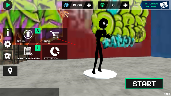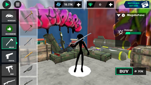 6、点击右上角可以切换拥有的武器,不断完成更多任务成为最棒的火柴人英雄。