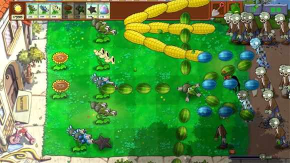 4、机枪西瓜杨桃:朝五个不同方向持续发射西瓜以攻击敌人。