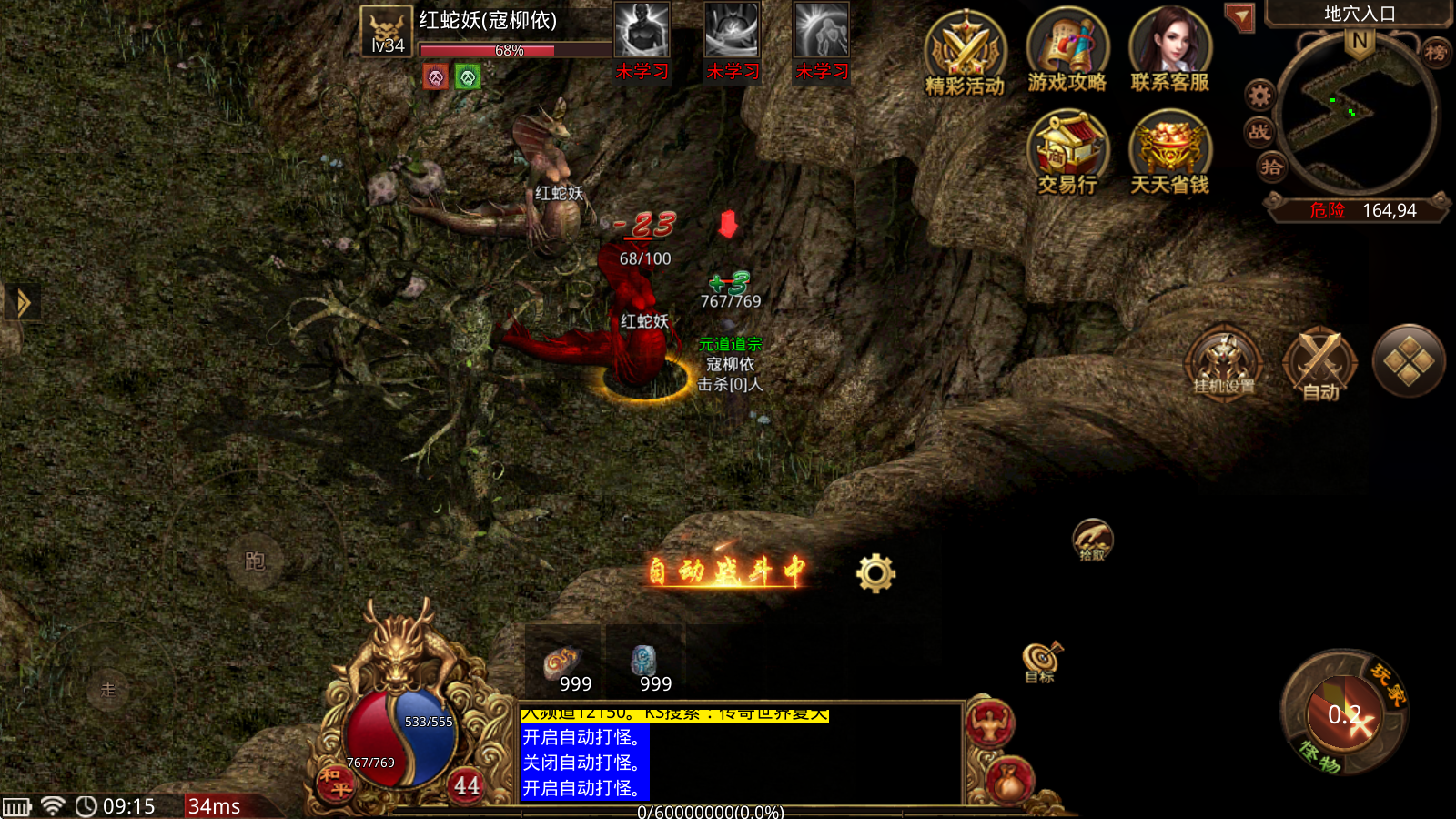 4、接着就可以去撸白蛇金刚。后续升级只能打怪为主,拉镖为辅。