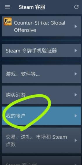 2、点击客服后选择我的账户按钮。