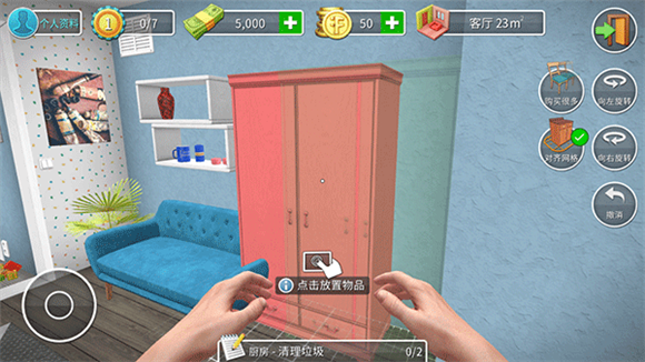 4、设计过程中,你能够对房间里的物品进行摆放。拖动物品就能调整它们的位置,也可以旋转物品,从而满足你的设计需求。