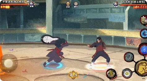 秽土转生的宇智波斑处于高空状态时,按下普通攻击键能够提前结束滞空状态并落地,同时借助方向摇杆可以调整落地的具体方位。其落地的覆盖范围较为广阔,横向移动距离大约相当于半个决斗场的宽度。