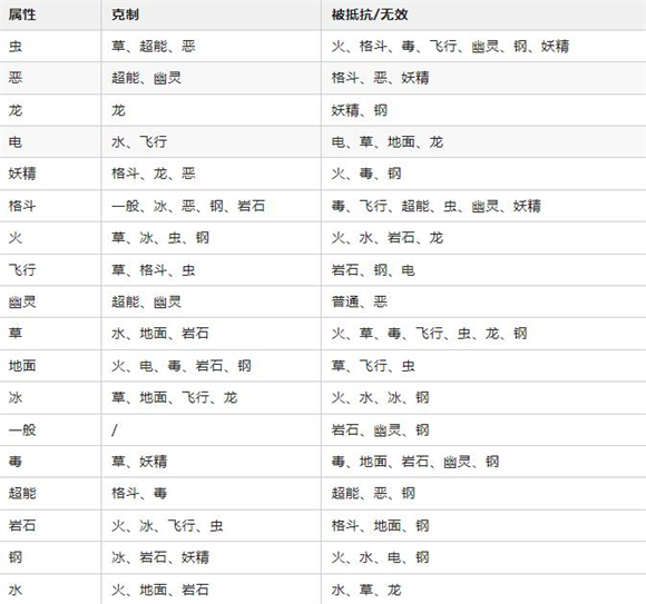 宝可梦在攻击或遭受攻击的过程中,会对双方自身的属性(与招式或普通攻击没有关联)展开比较,以此来判定是否存在克制关系或者抵抗关系。要是有多个属性的情况,就会开展多次判断,最后对加成效果进行统计。当出现属性克制的情况时,伤害会乘以1.5;而当属性被抵抗甚至无效时,伤害则会除以1.5。详细的克制关系可以参考下面的图示,另外星晶不存在克制方面的关系。
