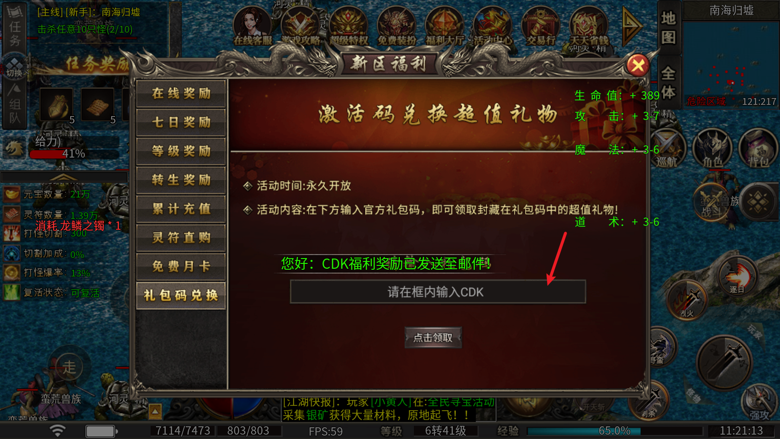 兑换方式:点击上方的福利大厅,打开礼包码兑换这一栏,输入兑换码即可。