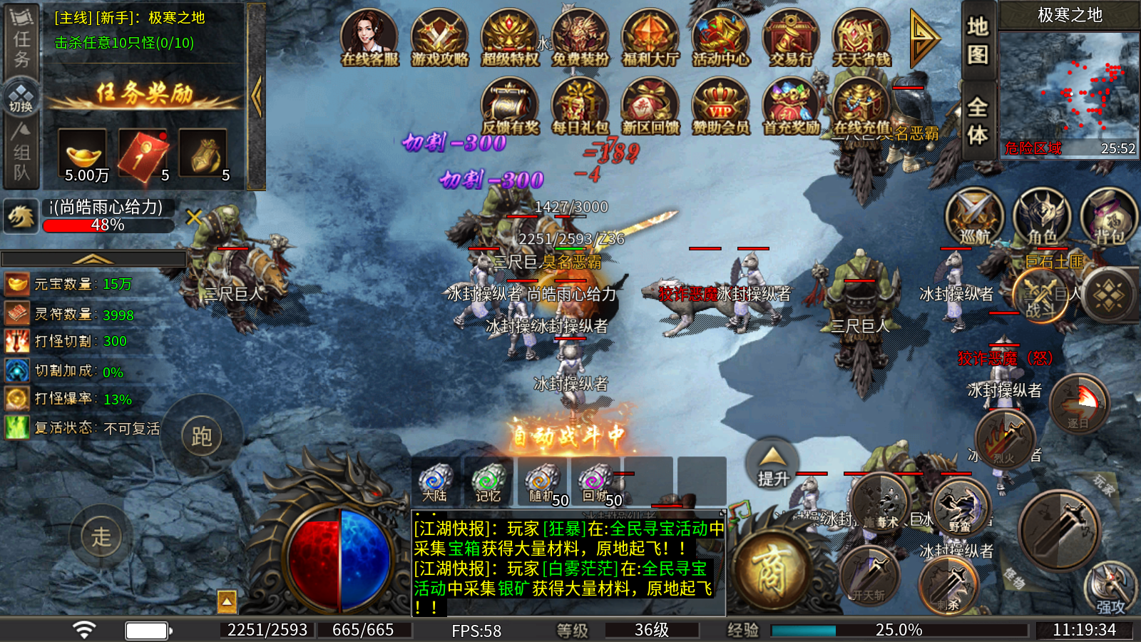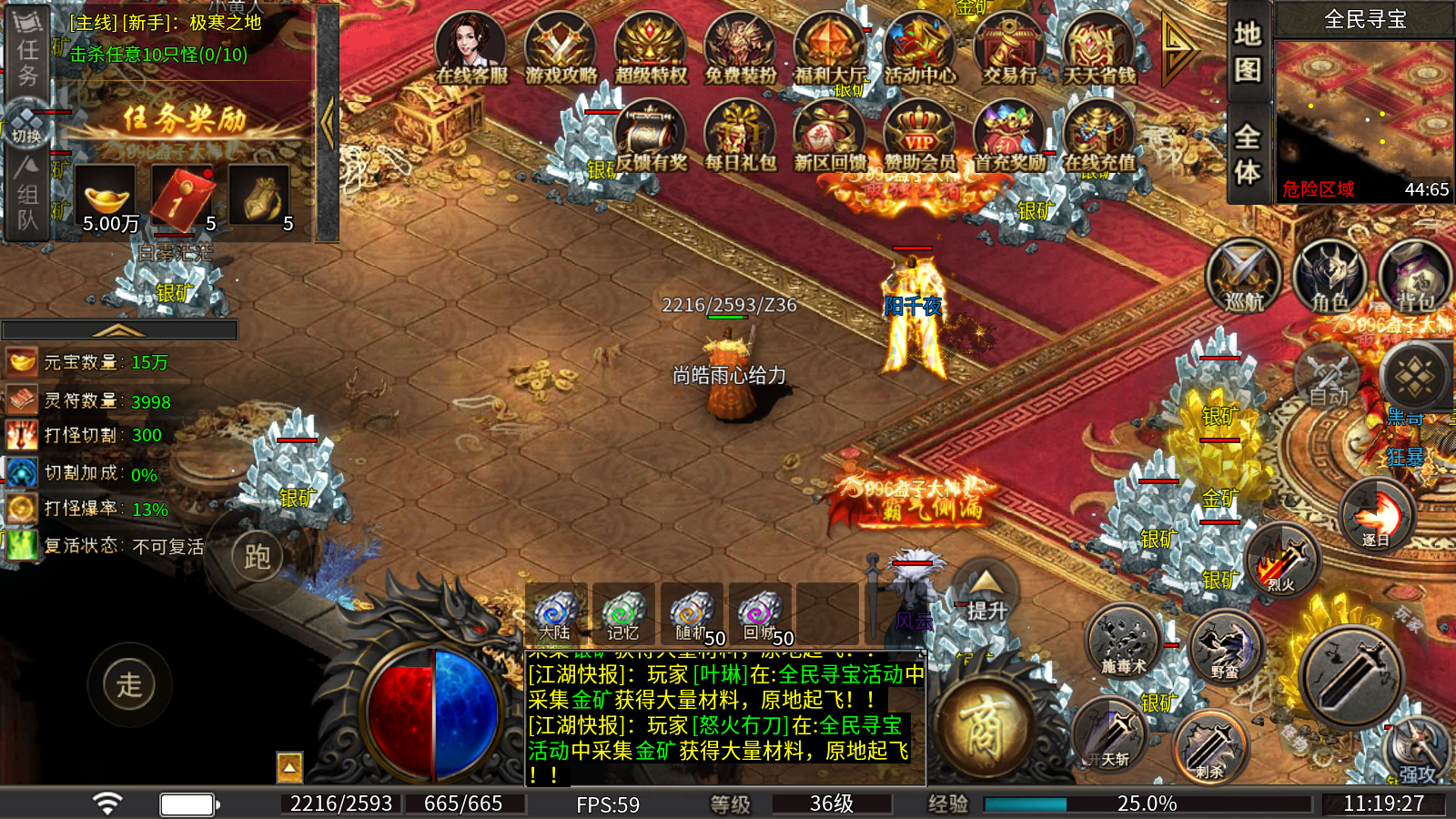 1、全民寻宝、全民钓鱼、宝藏魔王等精彩活动开区就放松,各种装备、元宝、灵符奖励领不停。