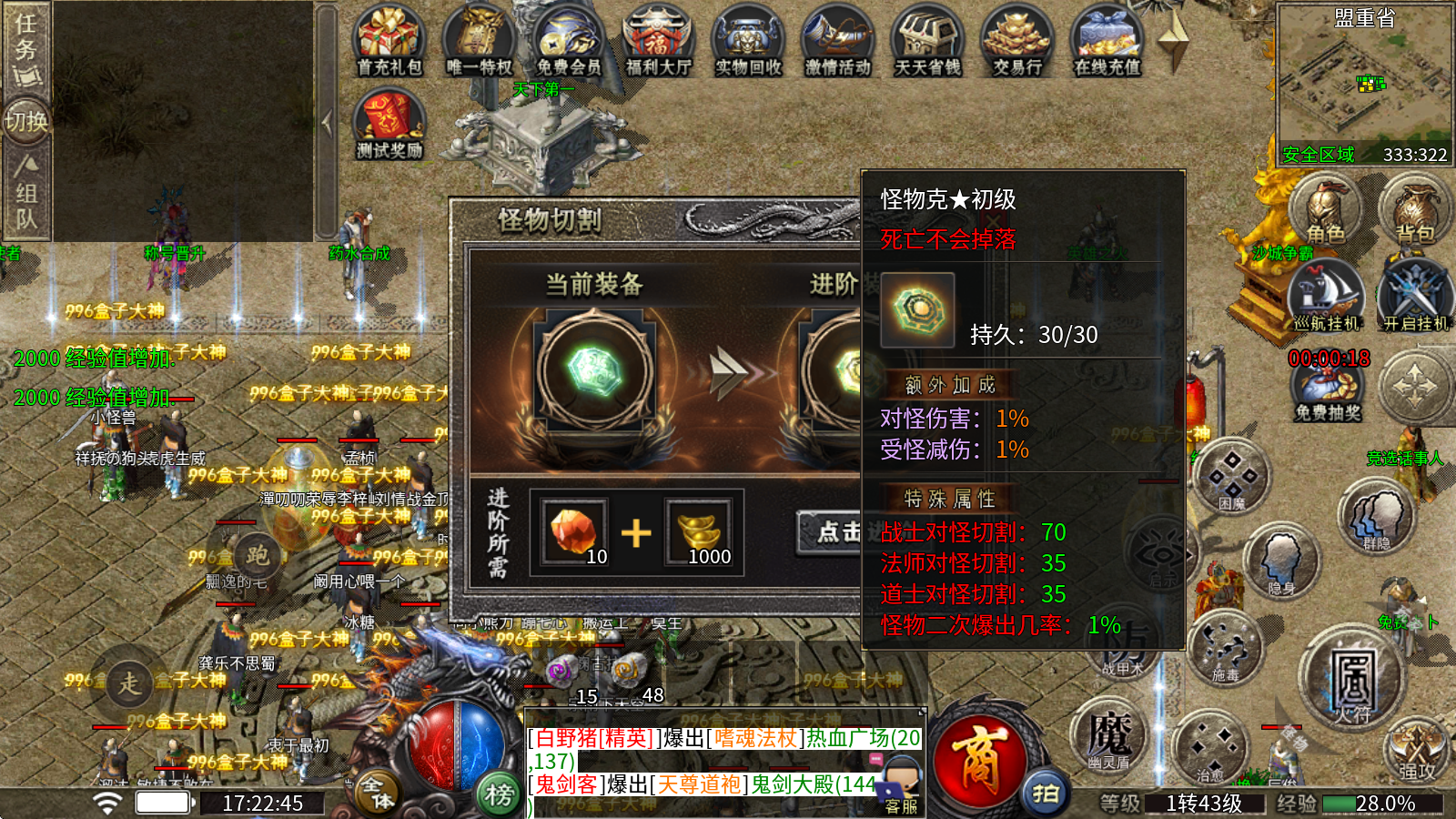1本服务器的特权身份无需付费获取,只需通过击败怪物就能逐步提升等级直至满级,过程中还能免费解锁强力属性加成与丰厚福利礼包。