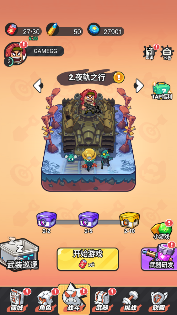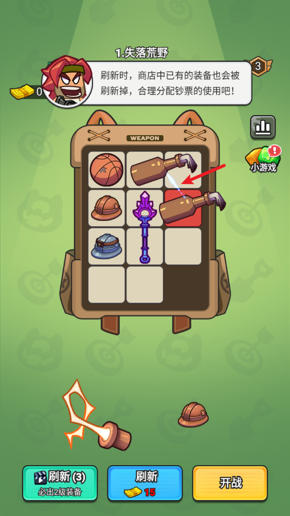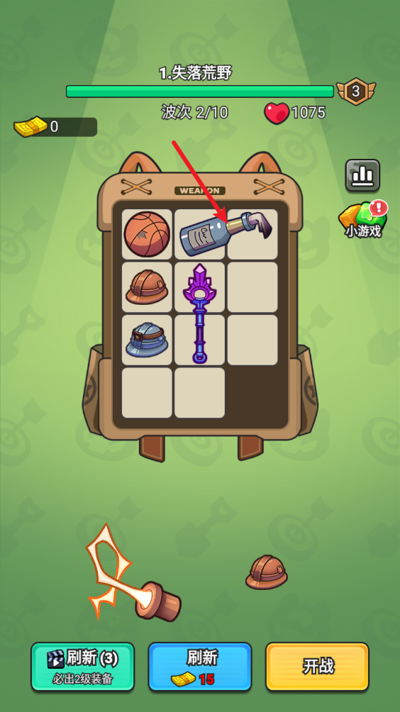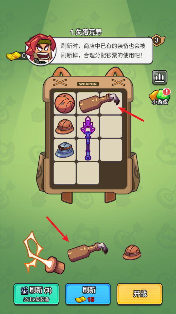 1、战斗前我们可以拖动武器到背包中,以此获得战斗力,并且每一波战斗结束后都可以进行休整。