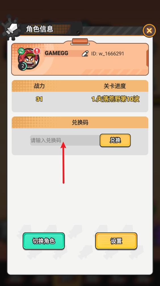 兑换方式:点击人物头像,在输入框中输入兑换码即可兑换。