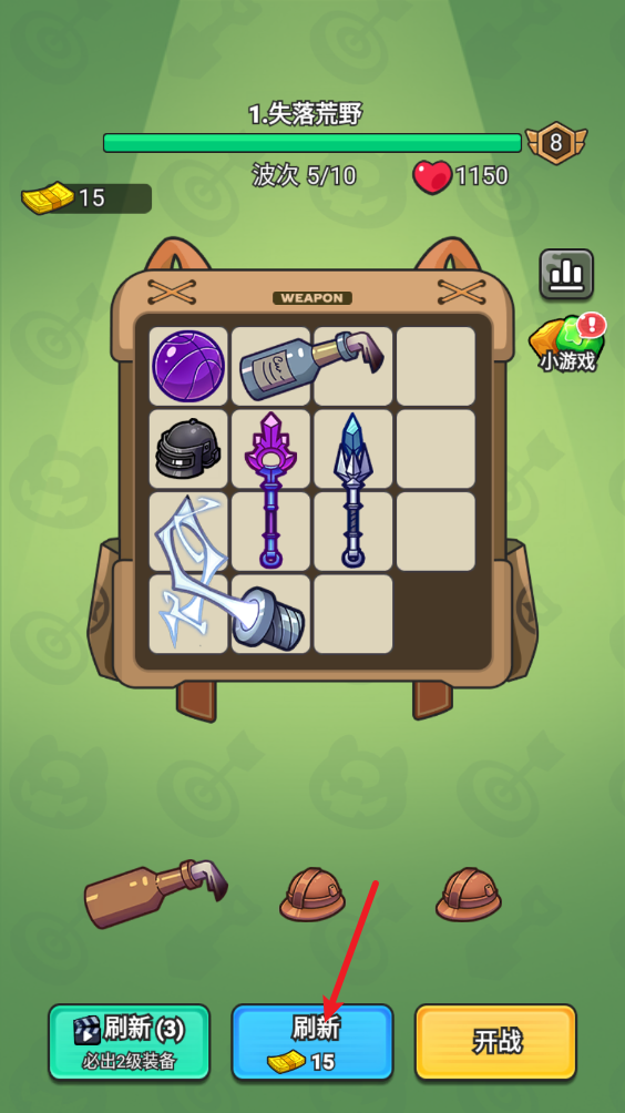 3、当武器装备完了,还可以消耗金币来进行刷新。