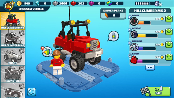 1、许多不同的乐高积木赛车可以选择来闯关,有趣的游玩过程会给你带来不同的体验。