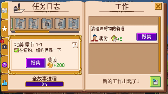 2、点击下方第一个书本按钮可以查看任务,在这里你能接取各种各样的任务。