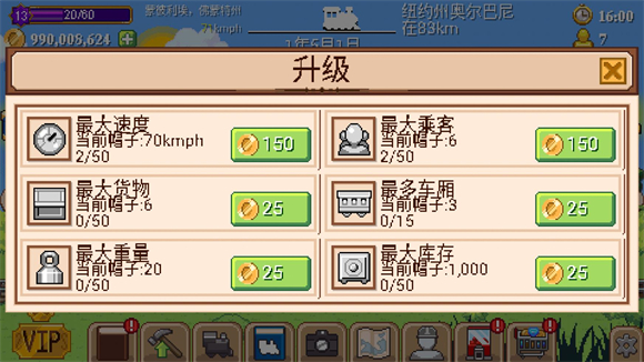 3、点击第二个锤子按钮可以对火车进行升级,每次升级都会消耗不同数量的金币。
