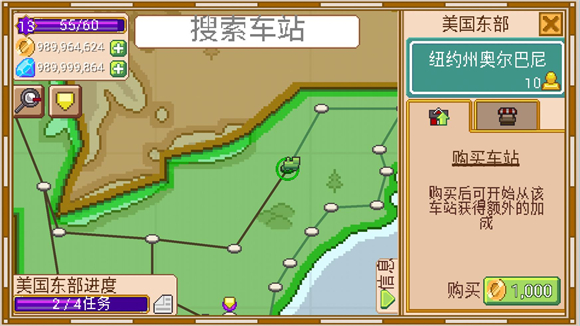小小铁路,英文名称Tiny Rails,是一款像素经营游戏,玩家将经营属于自己的铁路公司,你可以自由选择不同的火车和车厢来完成任务,选择合适的铁路路线来运输各种货物,获得金币解锁更多的火车,不断经营来打造最棒的铁路公司。