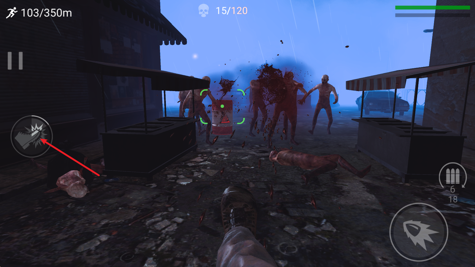 5、当僵尸靠近的时候,还可以使用踢腿攻击。