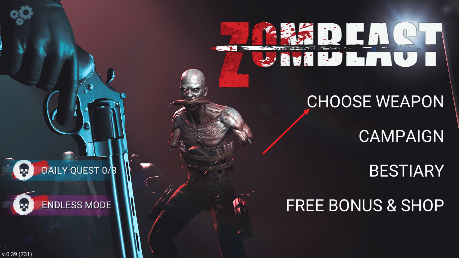 1在主界面找到“CHOOSE WEAPON”选项并点击,即可进入武器相关的操作界面。