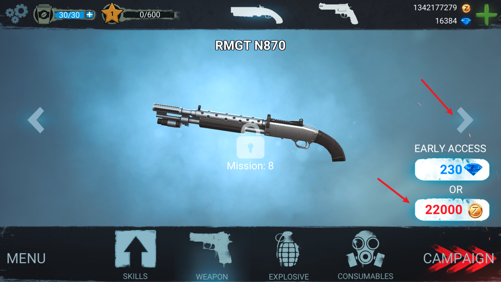 2然后借助此处的箭头就能切换至各类武器,挑选适配的完成购买操作就可以了。
