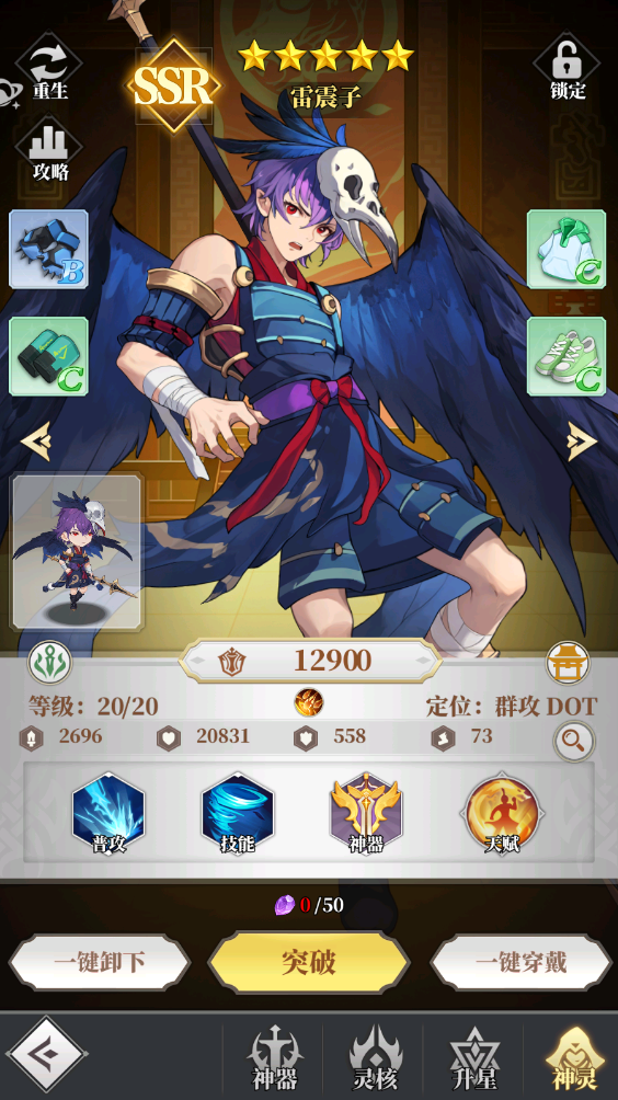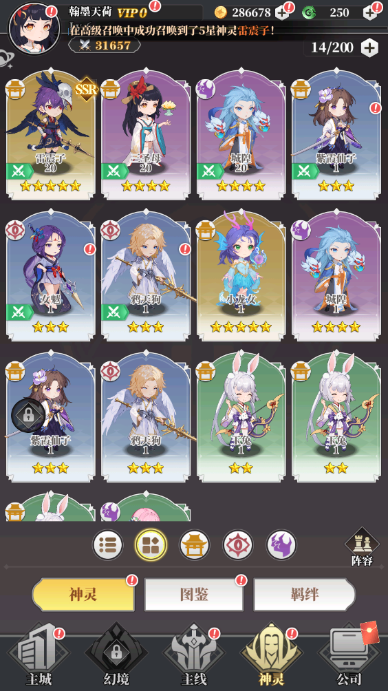 7、在神灵界面我们能够查看到自己所拥有的角色。