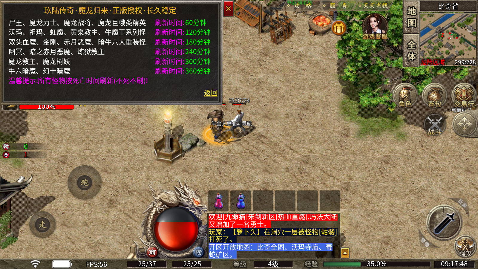 2、沃玛、祖玛、虹魔、黄泉教主、牛魔王系列怪,刷新时间:120分钟